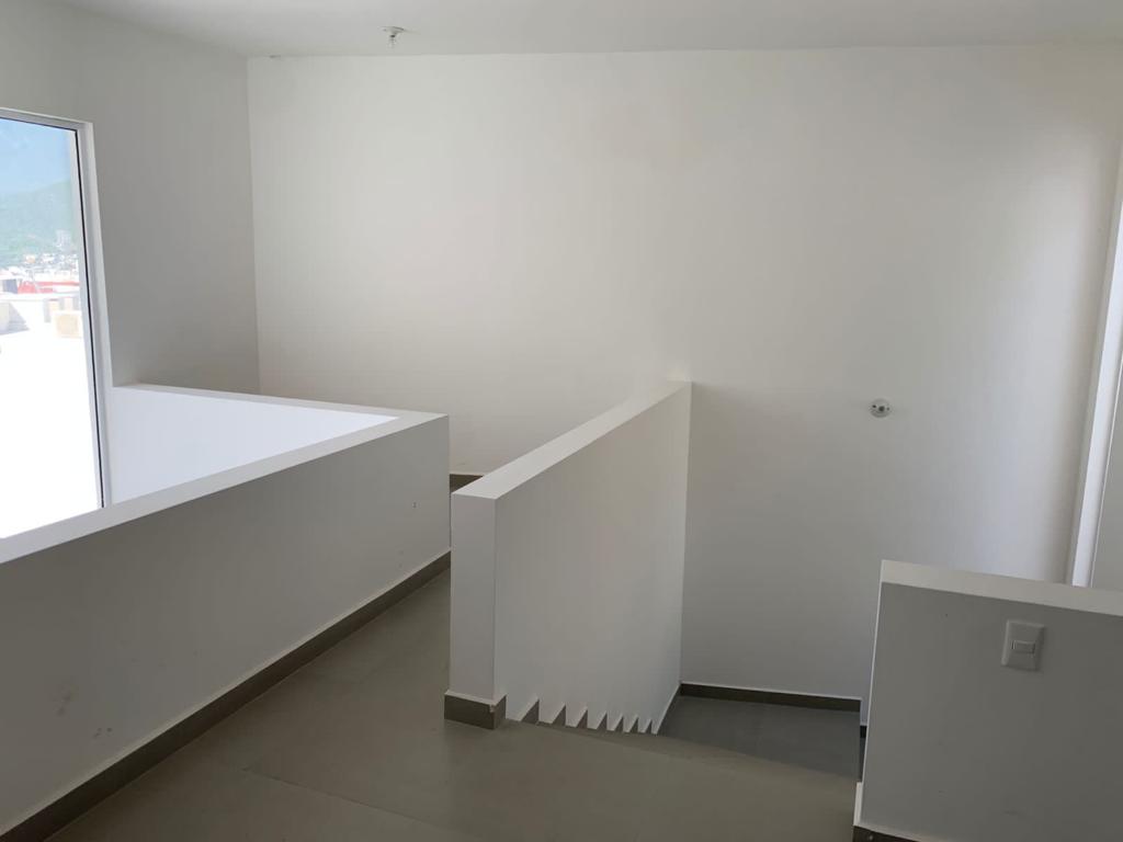Se vende casa nueva estilo contemporáneo en el fraccionamiento Contry Sur, al sur de Monterrey, rumbo a carretera nacional. Es un fraccionamiento con caseta de vigilancia. La casa cuenta con cochera doble con opción de un tercer estacionamiento o una bodeguita, recibidor de doble altura con ventanal, baño de visitas, sala comedor con balcón, cocina abierta, lavandería, cuarto de servicio con baño, pasillo lateral. Cuenta con jardín grande con terraza, aproximadamente de 80 m2. En el segundo nivel tiene estancia familiar, area para escritorio, recámara principal con balcón, clóset y baño, 2 recámaras con clóset y baño cada una. Son 278 m2 de terreno y 370 m2 de construcción.