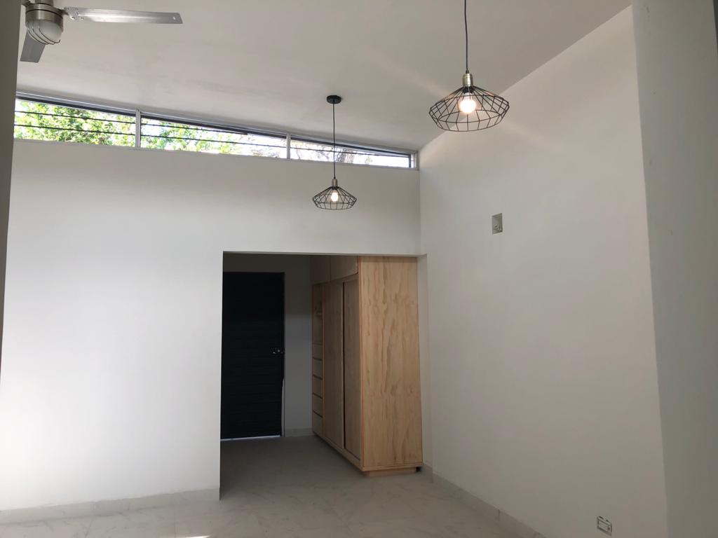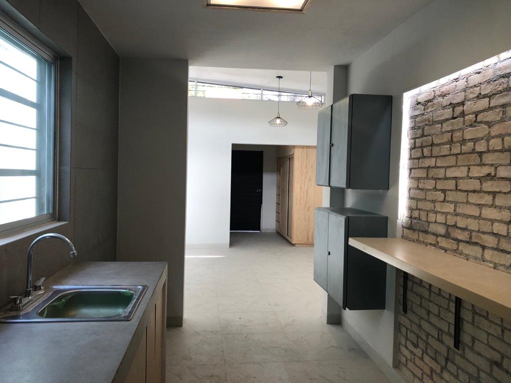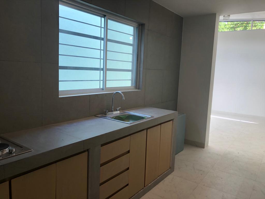 Se renta departamento totalmente nuevo, cuenta con cocina con parrilla eléctrica, refrigerador, barra desayunadora con bancos, recámara con cama matrimonial, salita, clóset, baño y minisplit. Mucha iluminación, jardín propio, cochera para un carro techada con portón eléctrico. Ubicada en la colonia Roma, incluye el servicio de agua, no tiene gas, todo es eléctrico. No mascotas.